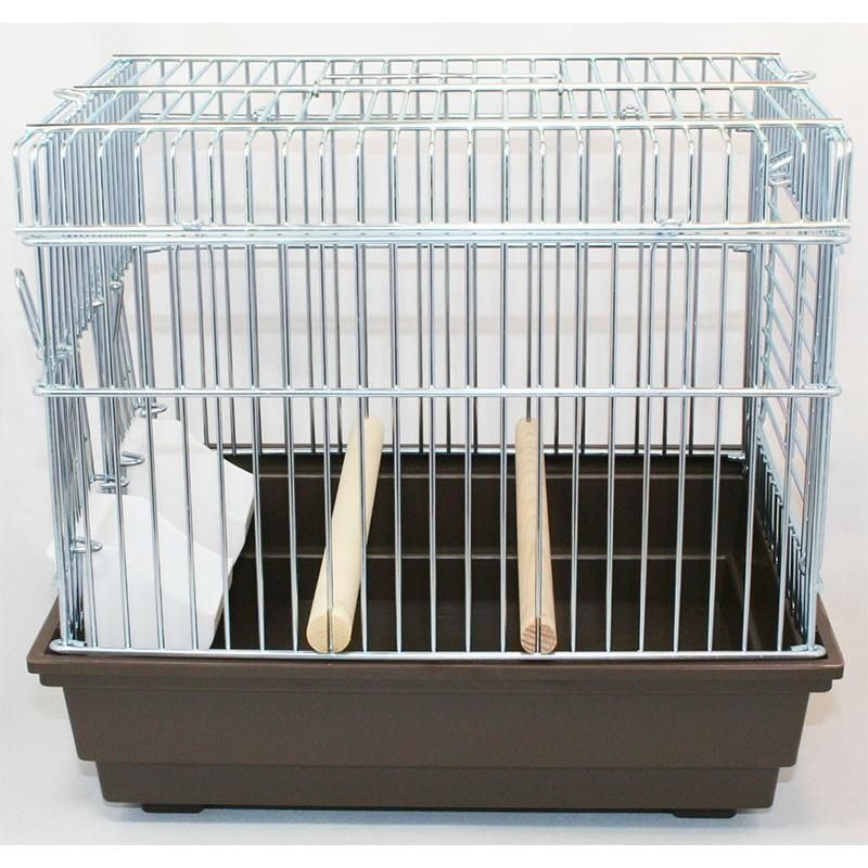 小鳥の移動用キャリーです。エサ入れ2個と太さの違う止まり木が1本ずつ(12Φ×1、15Φの計2本)ついてます。