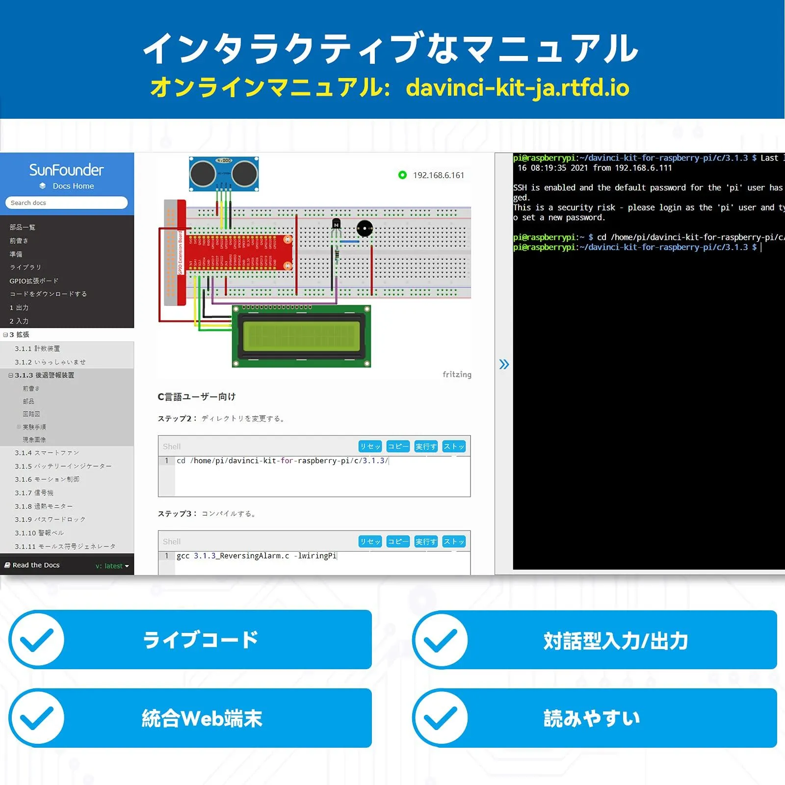 「800+ページ詳細日本語説明書:」PCで便利に学習できるワンストップオンラインマニュアルを採用します。電子工学の基本知識、実験原理、電路構築、ソースコードなどを提供されていて、自由研究、自由工作が楽しみます
