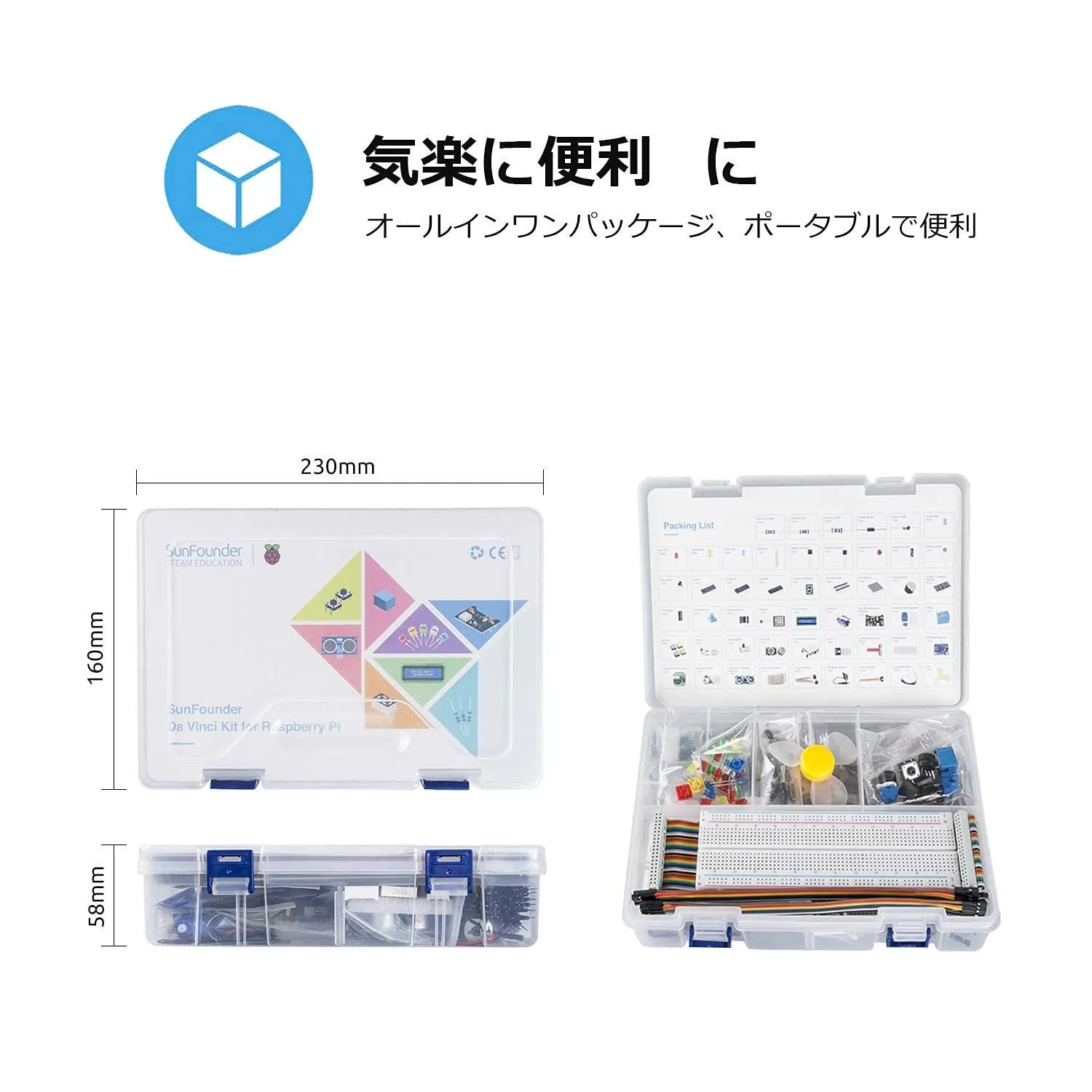 SunFounder Raspberry pi 用のスターター電子工作キット ラズパイプログラミング オンライン日本語説明書800+ページ詳細な教本と豊富なレッスン Raspberry pi 5/4B/3B+/3B/400/3A+/2B/1B+/1A+/Zero W/Zero に対応、C/Python/Java/Node.js/Scratchコードをサポート(※Raspberry Piなし)