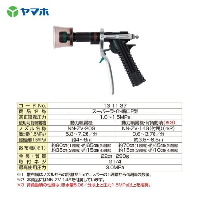 ●ノズルを付属のNN-ZV-14Sに交換することで、背負動噴、小型動噴などの吸水量の少ない機器でもご使用できます。