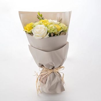 ホシファーム農園直送 摘みたてバラのフリルブーケ ホワイトイエローグリーン。