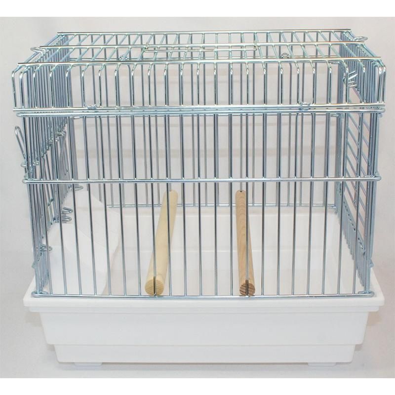 小鳥の移動用キャリーです。エサ入れ2個と太さの違う止まり木が1本ずつ(12Φ×1、15Φの計2本)ついてます。