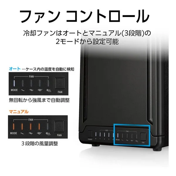 風量調整が可能な冷却ファンを搭載、最大4台の3.5インチHDDが接続できるHDDケース