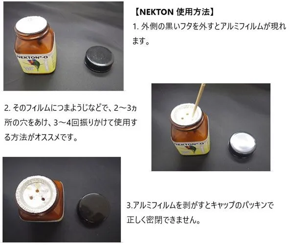 ≪換羽期の鳥類用水溶性粉末総合栄養剤≫成長期並びに換羽期における鳥類の正常な羽毛発育促進の為に特別に調整された鳥類用水溶性粉末総合栄養補助食品です。13種類のビタミン・17種類の必須アミノ酸・6種類の微量元素が鳥類の正常な羽毛発育促進の為に最適な形で調合されています。成長期・換羽期が終わりましたらネクトンSを使用して下さい。なお、繁殖期はネクトンバイオを絶えないようにご注意ください。