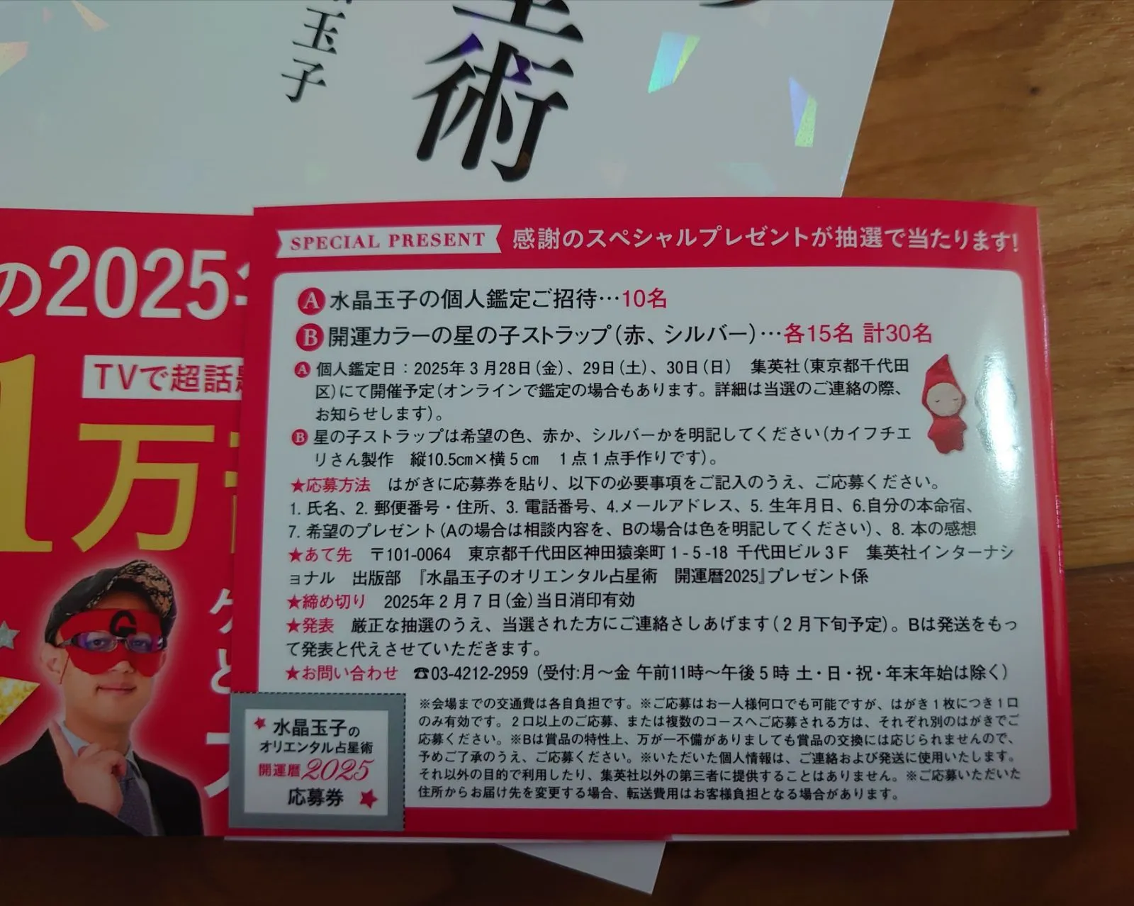 ★水晶玉子のオリエンタル占星術 2025年の購入者限定特典キャンペーン応募券★