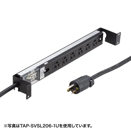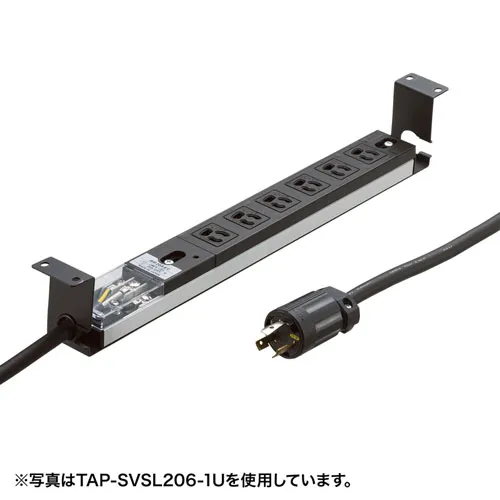 サーバーラックの1Uサイズに取り付け可能なブラケット付きの6個口のコンセントバー。