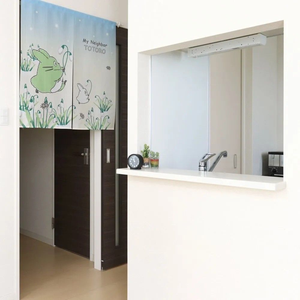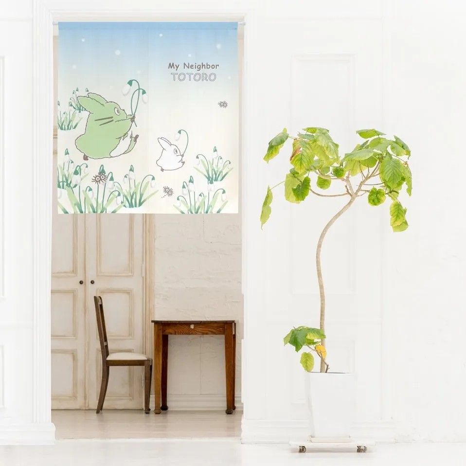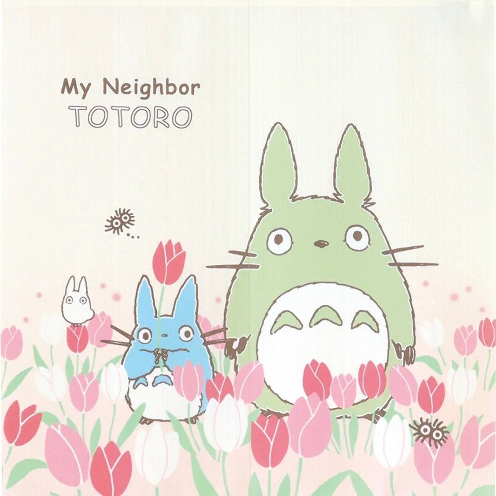 人気アニメ『となりのトトロ』の世界観を表現した四季のれんシリーズより、「チューリップとトトロ」のデザインです。春を感じさせるチューリップと、愛らしいトトロの姿が心を和ませます。