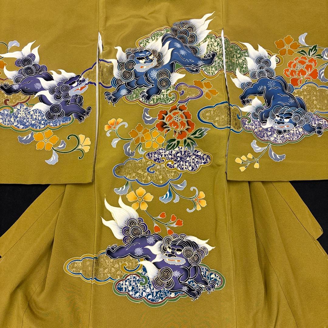 新品正絹祝着京友禅高級手描き染、豪華盛金、本金入、特選王朝唐獅子雲取り唐花古典文 (しつけ糸付き) 展示会に出品のお品です。