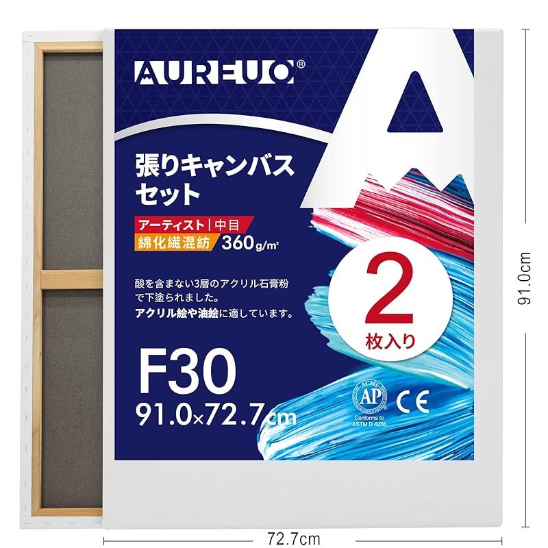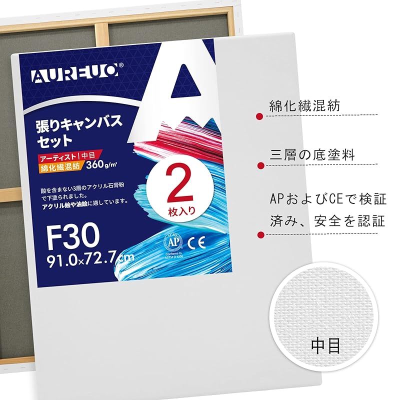 商品名:AUREUO 綿化繊混紡 張りキャンバス F30 (91.0cmX72.7cm) 2枚 - 中目布? 水彩画・油絵画・アクリル兼用 - モダンアート・ポップアートに最適