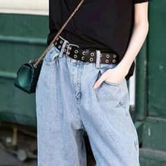 ダブルピンベルト ハトメベルト ストリート 韓国 Y2K 黒ユニセックス