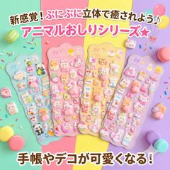 4枚シート アニマルおしり シール ステッカー ぷにぷにシール 3D 立体 ぷくぷく デコシール 手帳デコ かわいい パステル ゆめかわ 韓国 雑貨 新品