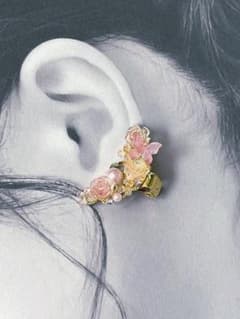 蝶とローズのイヤーカフ/イヤリング ハンドメイド