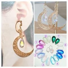 ハンドメイドイヤーカフ☆透かしMoon(マットゴールド)×ドロップガラスビーズ