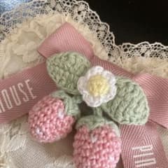 ハートコサージュ イチゴ、リボンつき