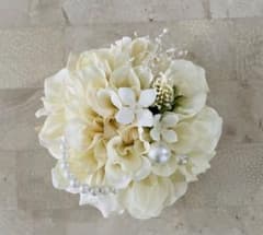 ホワイト 白ダリアパール セレモニーコサージュ 入学式 卒業 卒園 入園 白