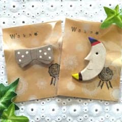 オーブン粘土のブローチ 三日月お月さま+りぼん 2個セット ハンドメイド