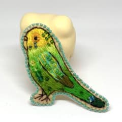 ハンドメイド★インコさん★2Way刺繍ブローチ&バッグチャーム