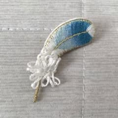 【未使用】Choucho Musubi*刺繍の一枚羽根の刺繍ブローチ(水色×白)
