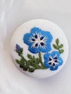 ネモフィラ 刺繍 ブローチ 38mm