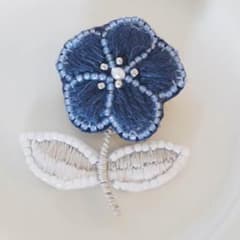 刺繍 花 ブローチ 白 ビーズ刺繍 ハンドメイド
