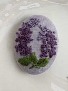 ハンドメイド ライラック 刺繍 ブローチ 4.5×3.5㎝