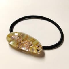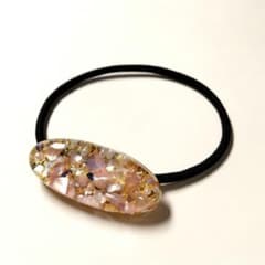 72.シェル 金箔 華やか 薄ピンク ヘアゴム