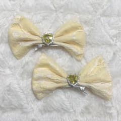 ♡ 立ちリボン ツインテール ヘアクリップ 髪飾り アイドル メイド 黄色 ♡