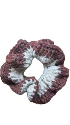 ハンドメイド フリルシュシュ 編み物 かぎ編み むらさき系 毛糸