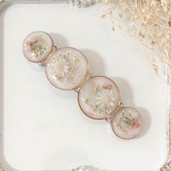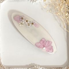 バレッタ 6cm ドライフラワー ピンク大理石風 レジン