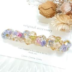 バレッタ 6cm ドライフラワー 八重咲紫陽花 レジン