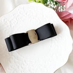 リボン バレッタ パール ブラック