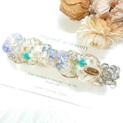 1842*ハンドメイド♡押し花のバレッタ ブルー