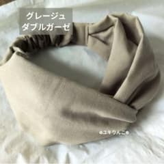 グレージュ ダブルガーゼ.ヘアターバン ハンドメイド