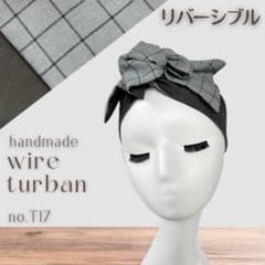 《no,T17》リバーシブルワイヤーターバン ブロックチェック BK