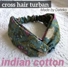 クロスターバン ヘアバンド エスニック バティック柄 アジアン インド 花 緑