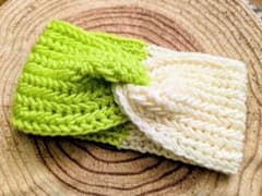 ヘアターバン・ヘアバンド 大人用 ライトグリーン×アイボリー アクリル毛糸 春夏
