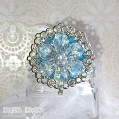 【326】雪の華ポニーフック+ブルーオーロラ(ブローチ・ヘアゴム変更OK)