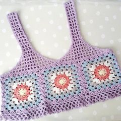 ビスチェ キャミソール コットン ベスト 手編み ニットビスチェ かぎ針編み モチーフ編み グラニースクエア