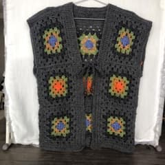 グレーの手編みグラニーベスト