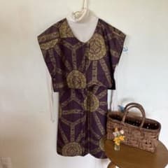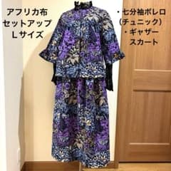 アフリカ布 ギャザースカートと七分袖のセットアップ Lサイズ 綿