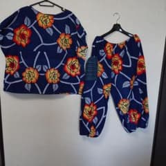 浴衣反物、唐草風呂敷リメイクフーデットプルオーバーセットアップVネック