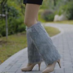 おしゃれふわふわ冬暖かいブーツカバーファーレッグウォーマーモコモコno68グレー
