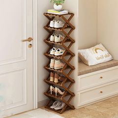 【数量限定】8段 伸縮 コンパクト 竹製 ラック シューズ収納 靴 靴 スペース 省 玄関家具 折畳式 下足箱 玄関収納 ベランダ 完成品 シューズボックス 収納 伸縮 下駄箱 靴棚 靴箱 (ブラウン8段) 組立不要 スリム シューズラック