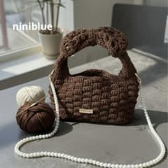 かぎ編み リボンハンドバック ブラウン