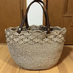 ♡手編み 麻紐バック ♡麻ひもトートバッグ レースモチーフバッグ
