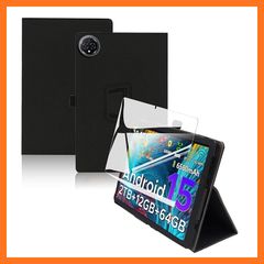 【新品】 For DOOGEE Tab A9/A9 Pro ケース フィルム セット DOOGEE Tab 10.1インチ 用 保護ケース ガラスフィルム 軽量 角度調整 上質PU製 全方位カバー 耐衝撃 【ブラック】+保護フィルム1枚 0