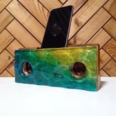 【未使用】スマートフォンスピーカー エコパインスピーカー アカマツ木製 格子細工