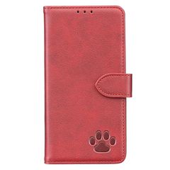 【新品】 case For Xperia 5 IV SO-54C/SOG09/A204SO カバー ケース手帳型 猫 肉球の跡マグネット開閉式 カードポケット付き 横開きスタンド 財布型 全面保護 (M2-赤, に適用するXperia 5 IV SOG09 0