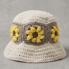 【ハンドメイド】ひまわりモチーフのクロシェハット 手編み バケットハット