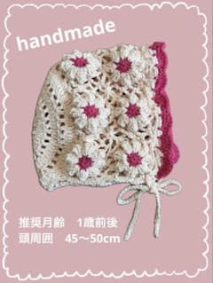 ベビーボンネット ハンドメイド ベビーハット かぎ針編み フラワーモチーフ